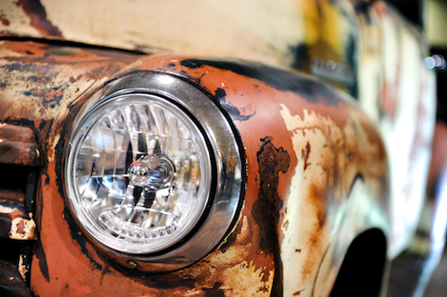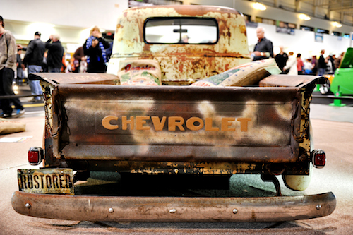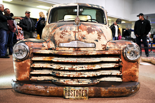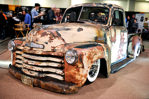After some weeks of research, Don came upon a one of one custom built 1950 Chevy pick up with the most unique patina finish he has ever seen. Unlike the contrive finishes so often seen at the shows, this old bone had genuinely blistered for years under the New Mexico sun.