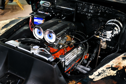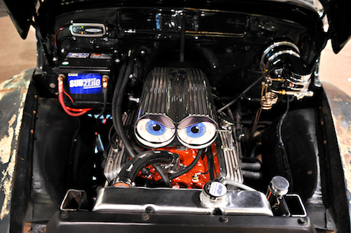 The truck has disc brakes all around for reliable breaking. For a more period perfect hot rod look, Gasiunas replaced the Foose 18” wheels with 15’’x6’’ fronts and 15’’x 8’’ rear chrome reverse wheels fitted with extra wide Coker white walls for really cool nostalgia.